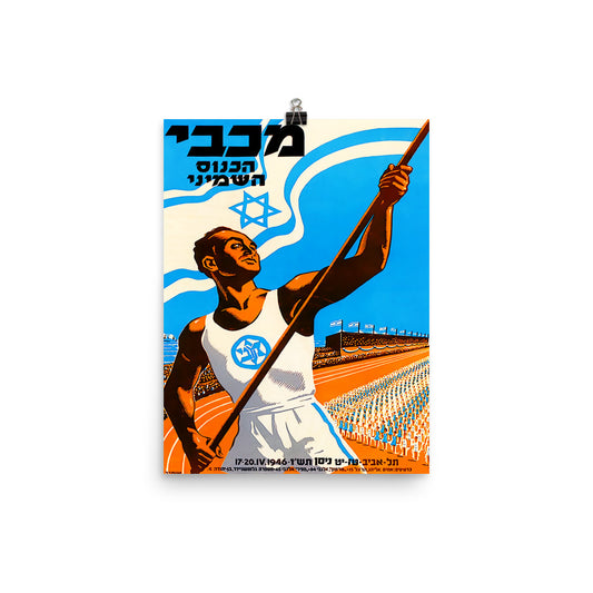 Vintage Reproduction Poster Print of 8th Annual Israeli Maccabi Games in 1946 in Hebrew | Retro, Hipster room decor | Unframed
