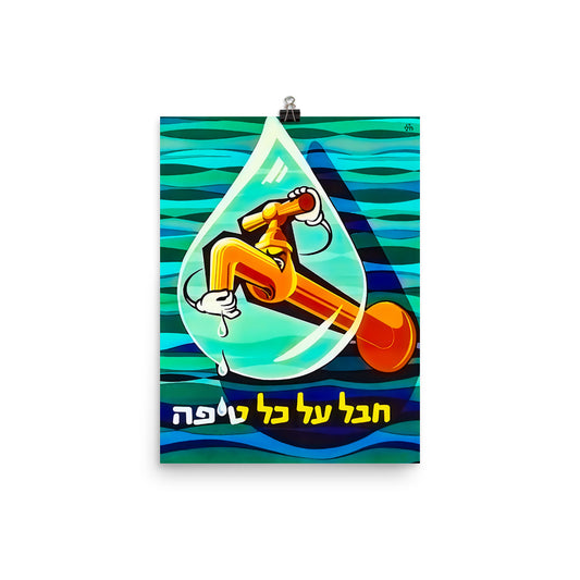 Vintage Israeli Campaign Ad Poster Print "Every Drop Counts" | Retro, Hipster, college dorm room decor, Indie Posters | Unframed